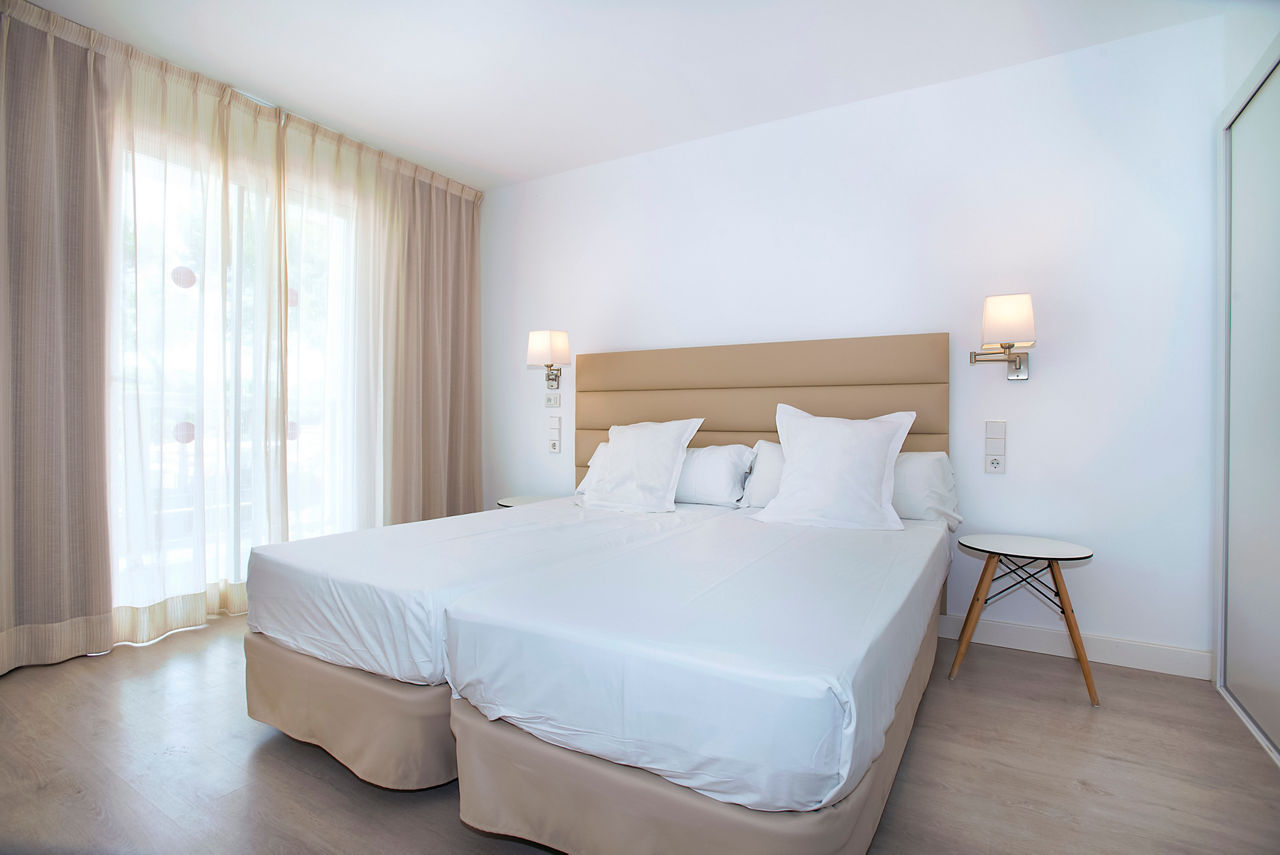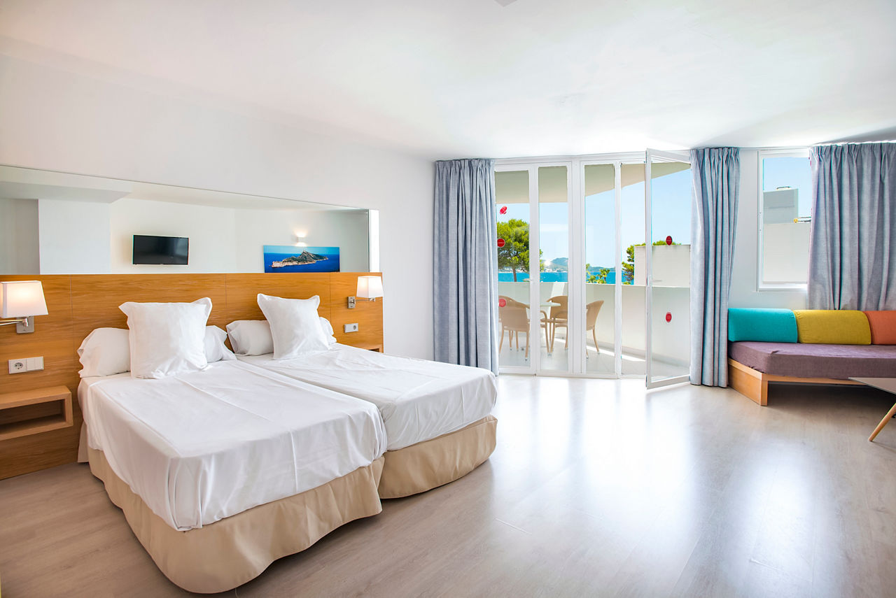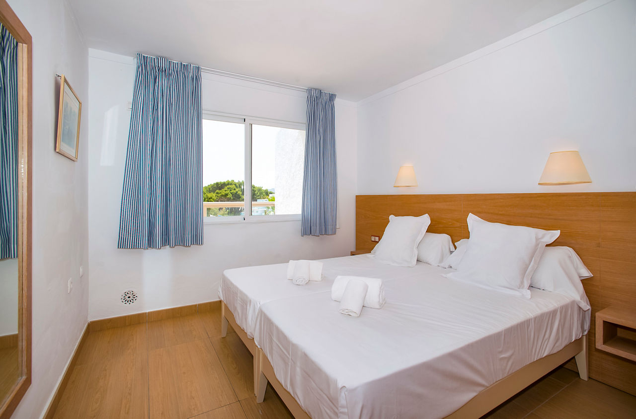 Aparthotel Ses Fotges boasts an excellent location just steps from the golden sandy beach and offers a packed entertainment programme. The buffet restaurant serves a variety of delicious dishes, catering to all tastes. Guests can choose from modern studios or apartments, with the option to upgrade to a sea view or swim-up apartment for an extra special experience. With a variety of board options, stunning surroundings, and exceptional facilities, Aparthotel Ses Fotges is the perfect choice for couples, groups, and families alike.Studios sleep up to 2 adults and 2 children and have bathroom containing a shower, air conditioning, hairdryer, television, fridge, microwave and balcony or terrace. One Bedroom apartments also available.