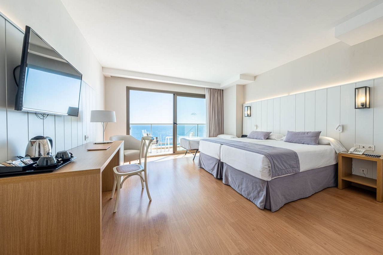 Pool meets sea at this pristinely decorated hotel in Benalmadena, placed right by the shimmering waves of the Mediterranean. Amidst the palm trees, there are stunning seafront views and the Estival Torrequebrada offers a rich roll call of facilities. There?s even an on-site casino! Plus, families will be impressed by the fun splash park and hotel entertainment. This sleek and modern hotel offers an excellent All Inclusive Plus programme too so you won't need to venture far. With so much to offer you?re certain to enjoy this wonderful hotel.Standard Double rooms sleep up to 3 adults and have bathroom containing a bath, flat screen television and balcony or terrace.