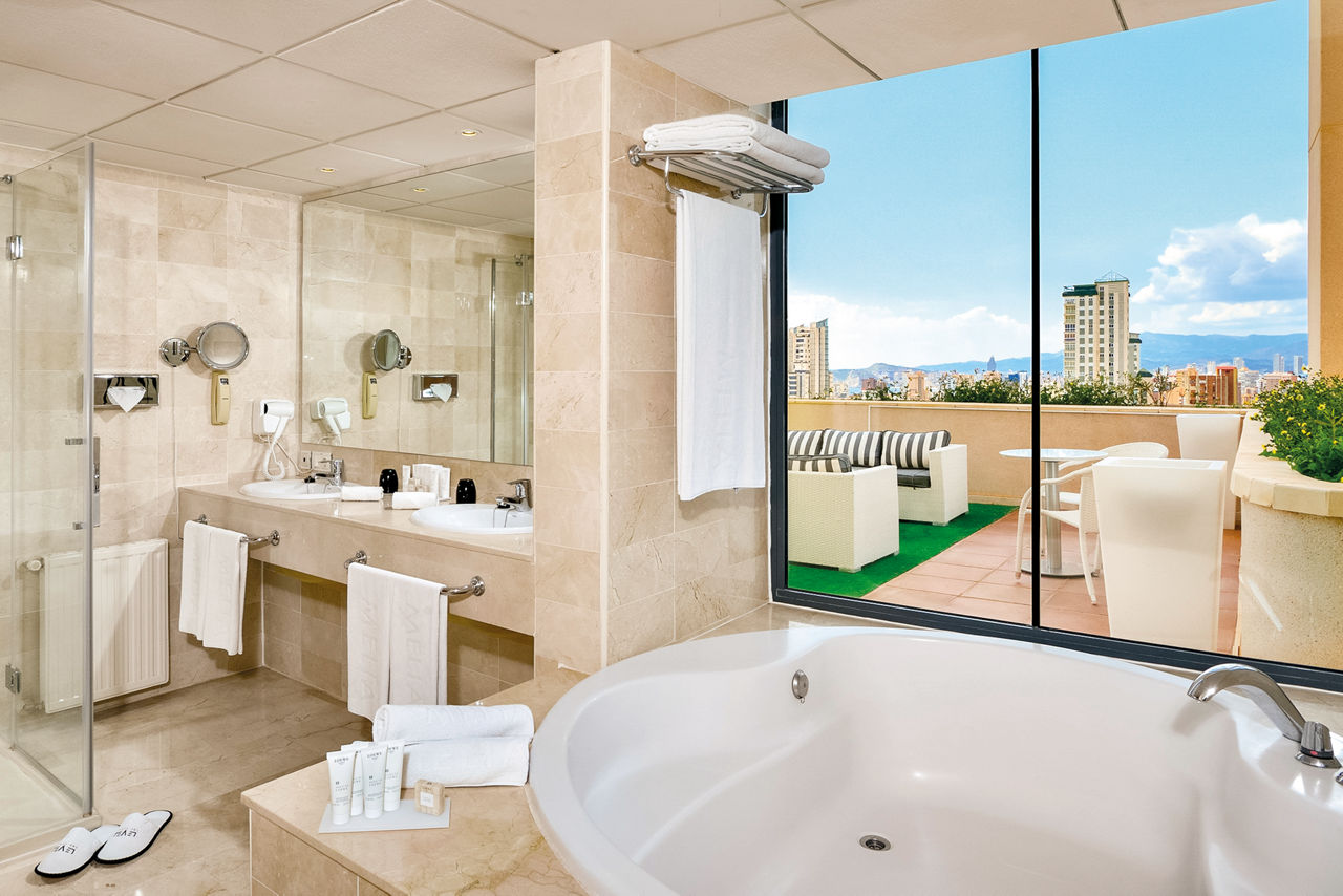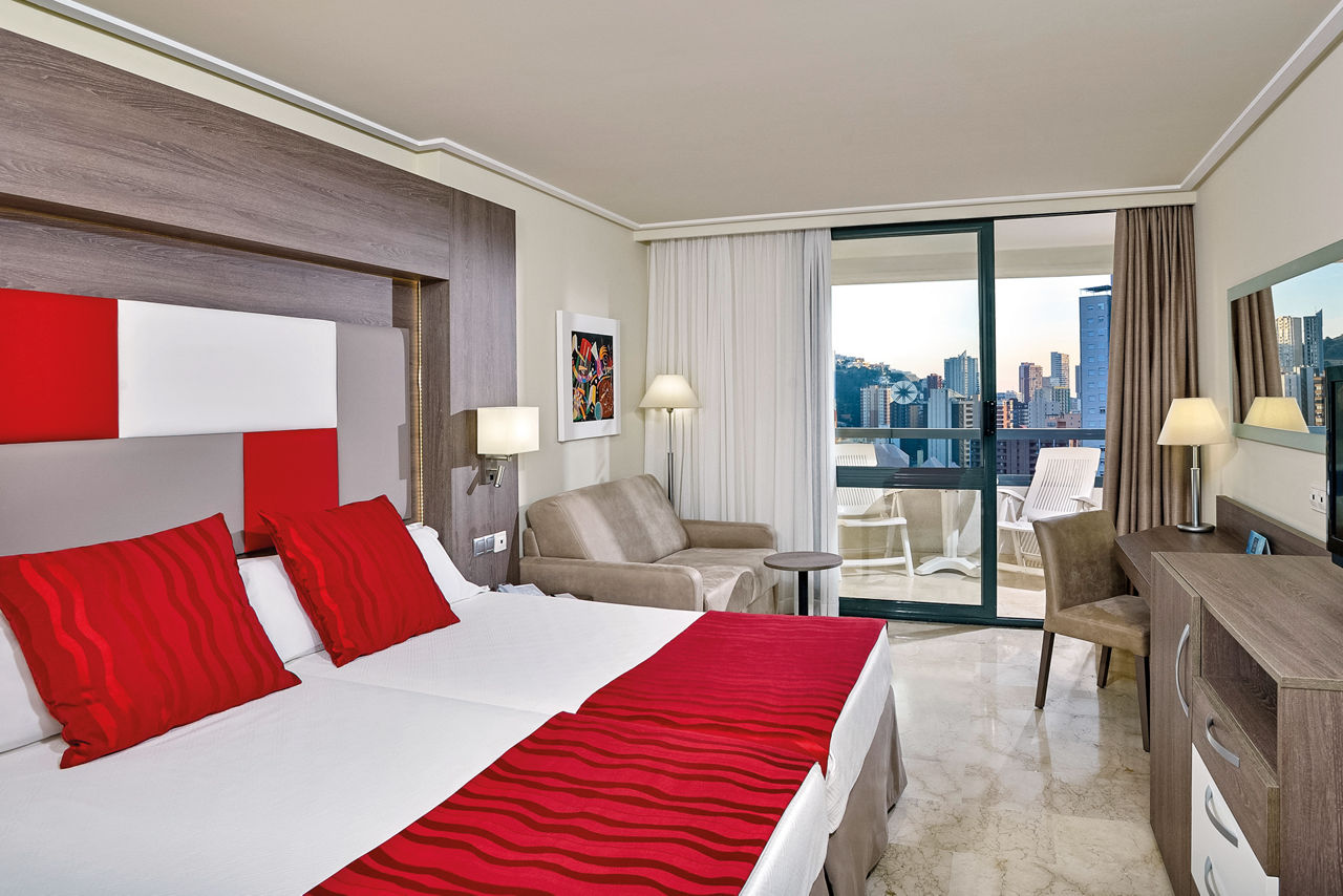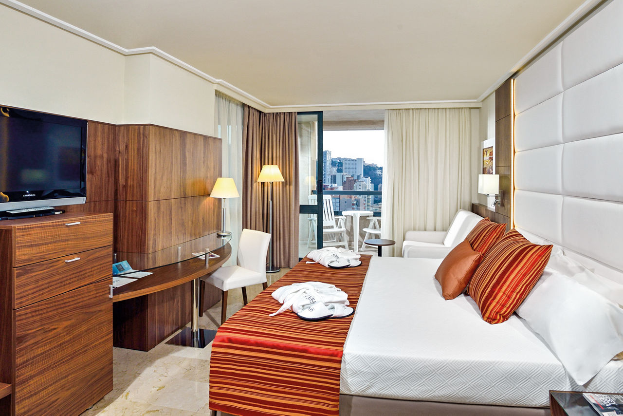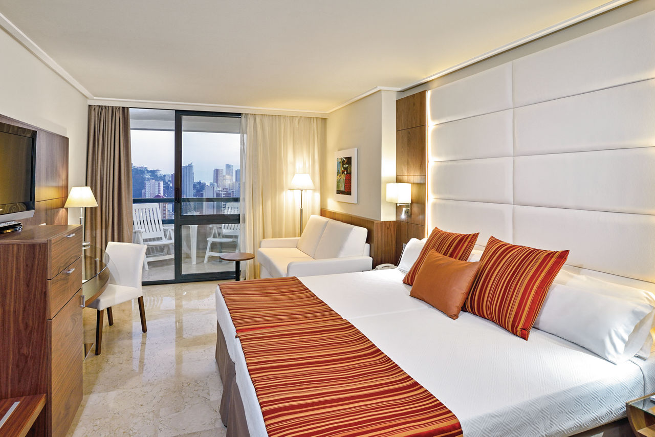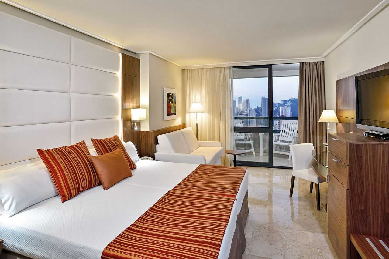 Situated a little way back from the bright lights of Benidorm, the Melia Benidorm still has a good selection of bars and restaurants on its doorstep. It is a great choice for couples and families looking to enjoy fabulous food, spacious pools, tropical gardens and stylish accommodation whilst still being within easy reach of the beach and resort centre. Make your stay extra special in The Level room and look forward to VIP service, luxury extras and exclusive entry to The Level Lounge.Double and Twin rooms sleep up to 3 adults and have a full bathroom, hairdryer, air conditioning (Jun-Sep), satellite TV and balcony or terrace. Double and Twin room with Second Room (not a connecting room) and Double and Twin rooms for Sole Use are also available.