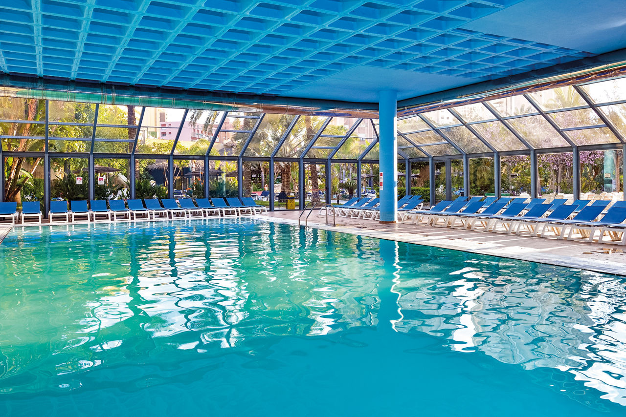 Two lagoon style outdoor swimming pools. Children?s swimming pool. Indoor heated swimming pool.Melia Benidorm